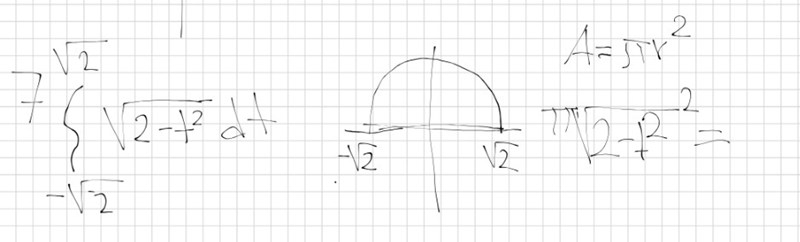 Om den är att bestämma en primitiv funktion till integranden så är det mer osäkert om cirkelarean är till hjälp.