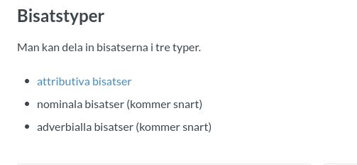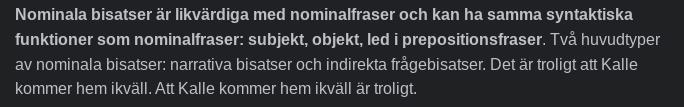 eller t ex predikativ (nominal bisats), objekt (nominal bisats) eller adverbial (adverbiell bisats)