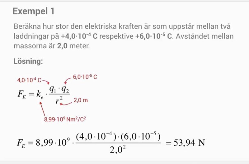 DinFavoritElev skrev:Har slagit in 8,99*E^9*(4,0*E^-4)*(6,0*E^-5)/2,0^2