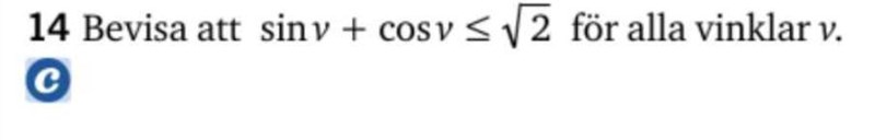 Okej det förstår jag, att alla påståenden inte är skrivna på den formen. I detta fal så e det inte så. Jag löste uppgiften genom att anta att sinv + cosv >för någon vinkel: