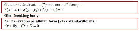 Precis som rubriken lyder, vad är skalärekvation till planet?