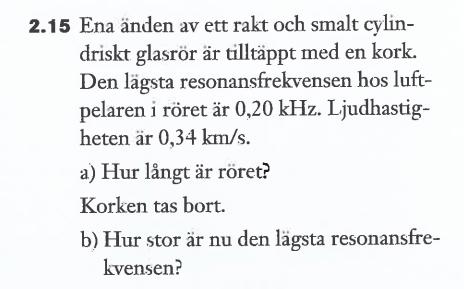 Jag har förstått att man på sådana här uppgifter ska räkna med formeln för våglängden för stängda pipor och halvöppna pipor. Men vad är ens en resonansfrekvens för något?