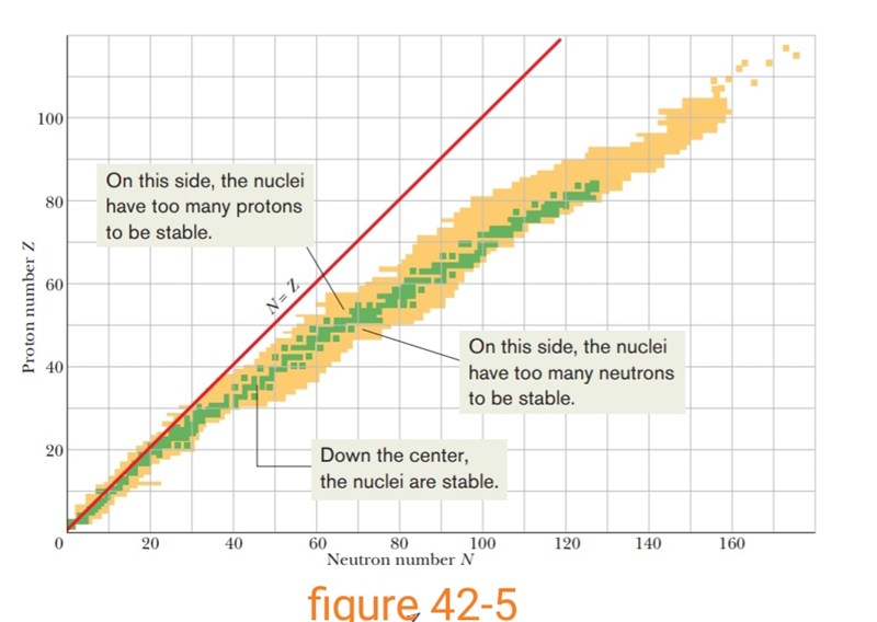 Man brukar betrakta sambandet mellan antalet neutroner och antalet protoner. Antalet protoner är lika med antalet neutroner. De stabila atomerna har ofta ett antal neutroner som är något högre än antalet protoner.