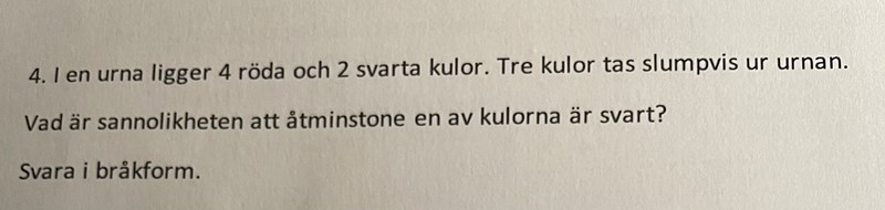 Vad är sannolikheten att en av kulorna är svarta.