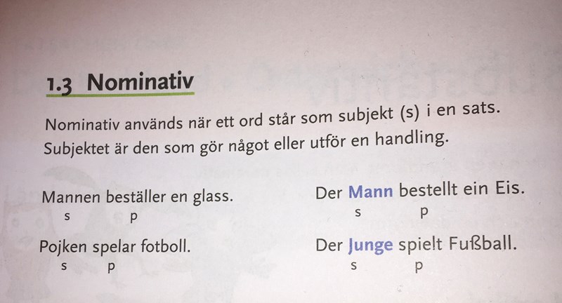mariamsophiee skrev:Laguna skrev:"En glass" är ackusativobjekt. Nominativa objekt finns nog inte. Jag vet inte vad en nominativ mening är. Har du en bild på detta?