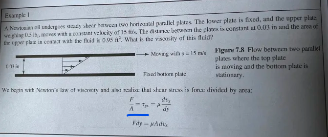 Eftersom plattan dras med en kraft kommer den påverka det närmsta lagret med kraft enligt Newtons tredje lag, och då kommer det närmsta fluidlagret dra lika hårt i plattan åt andra med en kraft . Samma fenomen propagerar nedåt i fluiden eftersom alla lager växelverkar med varandra. Utgör detta fenomen det man kallar för viskösa krafter eller är det det man kallar för shear stress? Vad är skillnaden på de två?