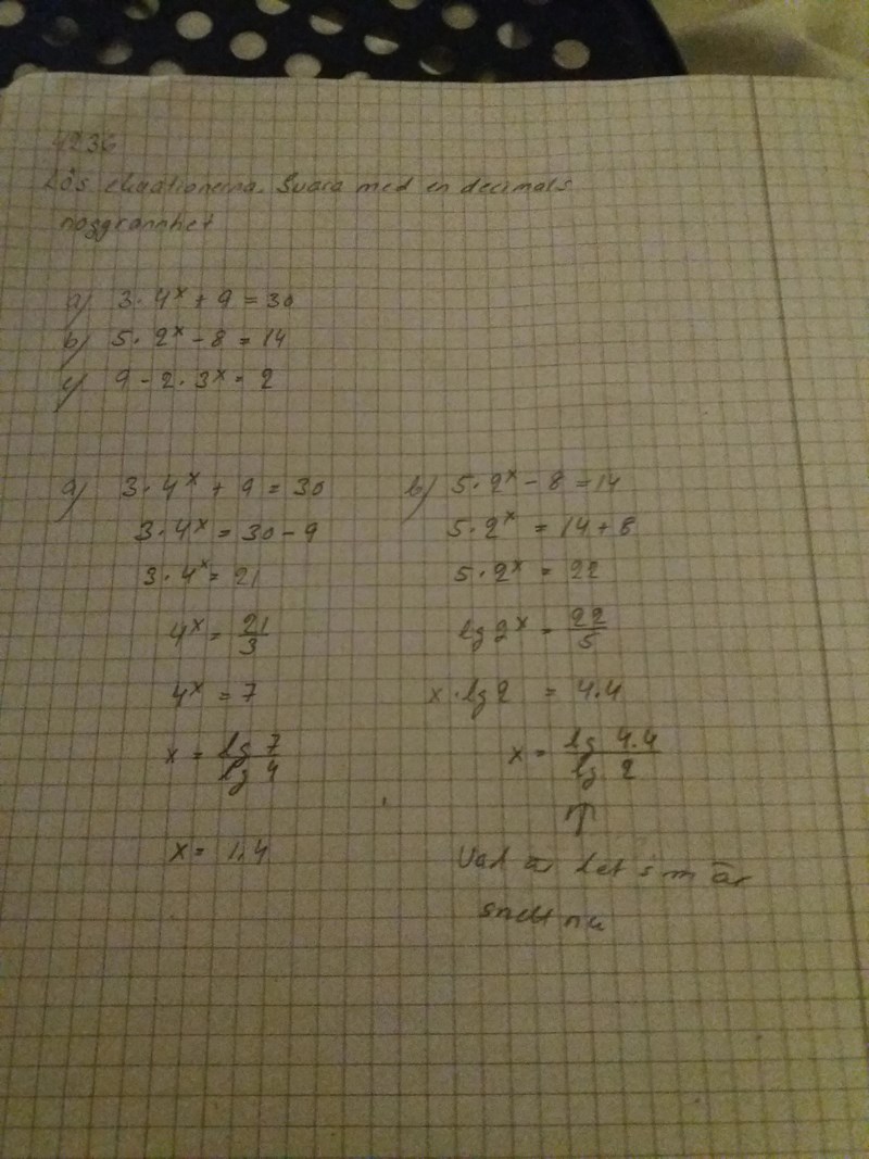 Ändå skriver du rätt svar x=lg(4.4)lg(2)