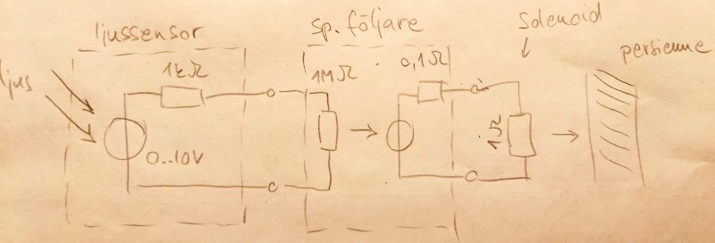Antag att du har en spänningsgenerator med ett relativt stort inre motstånd (t.ex. en ljussensor), och du försöker använda den för att driva ett kraftfullt ställdon, som behöver mycket ström (t.ex. en solenoid som rör en persienn).