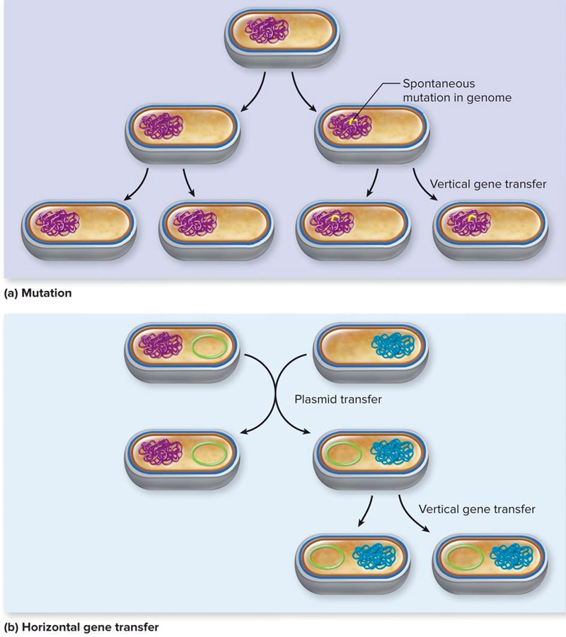 mag1 skrev:Vertikalt genflöde (eller vertikal genöverföring) sker från en organism till dess avkomma/dotterceller, och används ofta för att beskriva hur genöverföring av en viss gen (t.ex. med mutation eller en som gerantibiotikaresistens) sker hos en organism till de celler som bildas vid delning av denna organism - som med mutationen i a) delen av bilden, där mutationen ärvs genom vertikal genöverföring till dottercellerna.