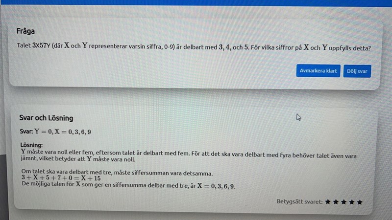 Slutsiffran i talet är Y. Talet är delbart med 5.