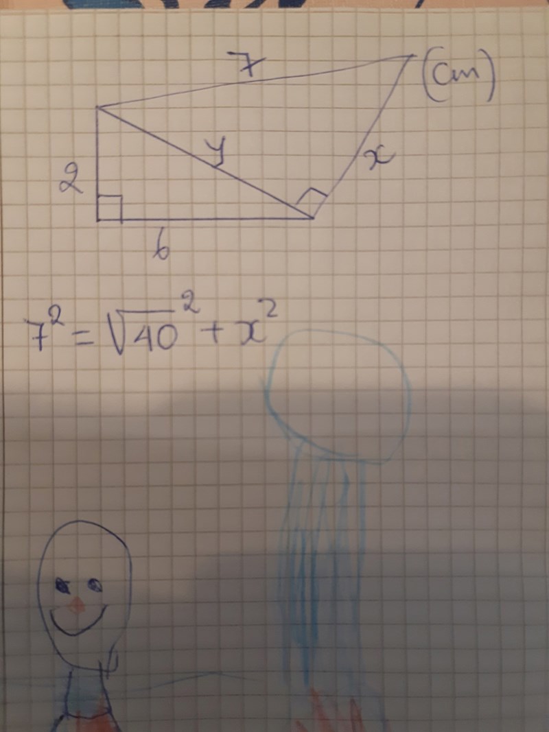 Du har använt Pythagoras till att beräkna y och sen en gång till till din ekvation, helt korrekt, återstår bara att lösa den. Det ser lite ovant ut med kvadraten på roten - förenkla den så ser du nog lösningen