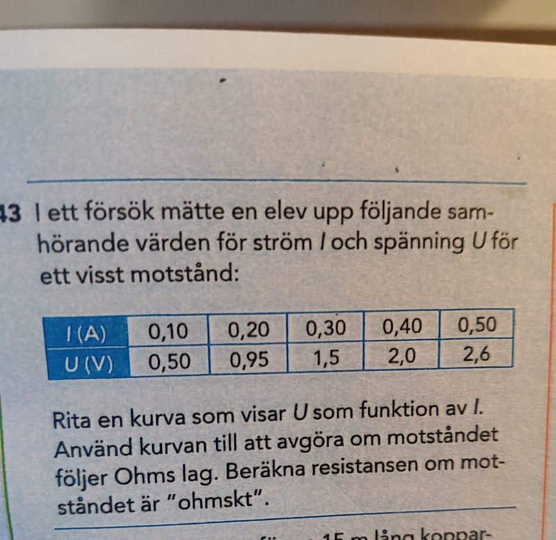 Ohms lag: U=RI. Du ska alltså först avgöra om den här lagen verkar gälla i det här fallet, och isåfall beräkna R. "Ohmskt" betyder i sammanhanget bara att Ohms lag gäller.