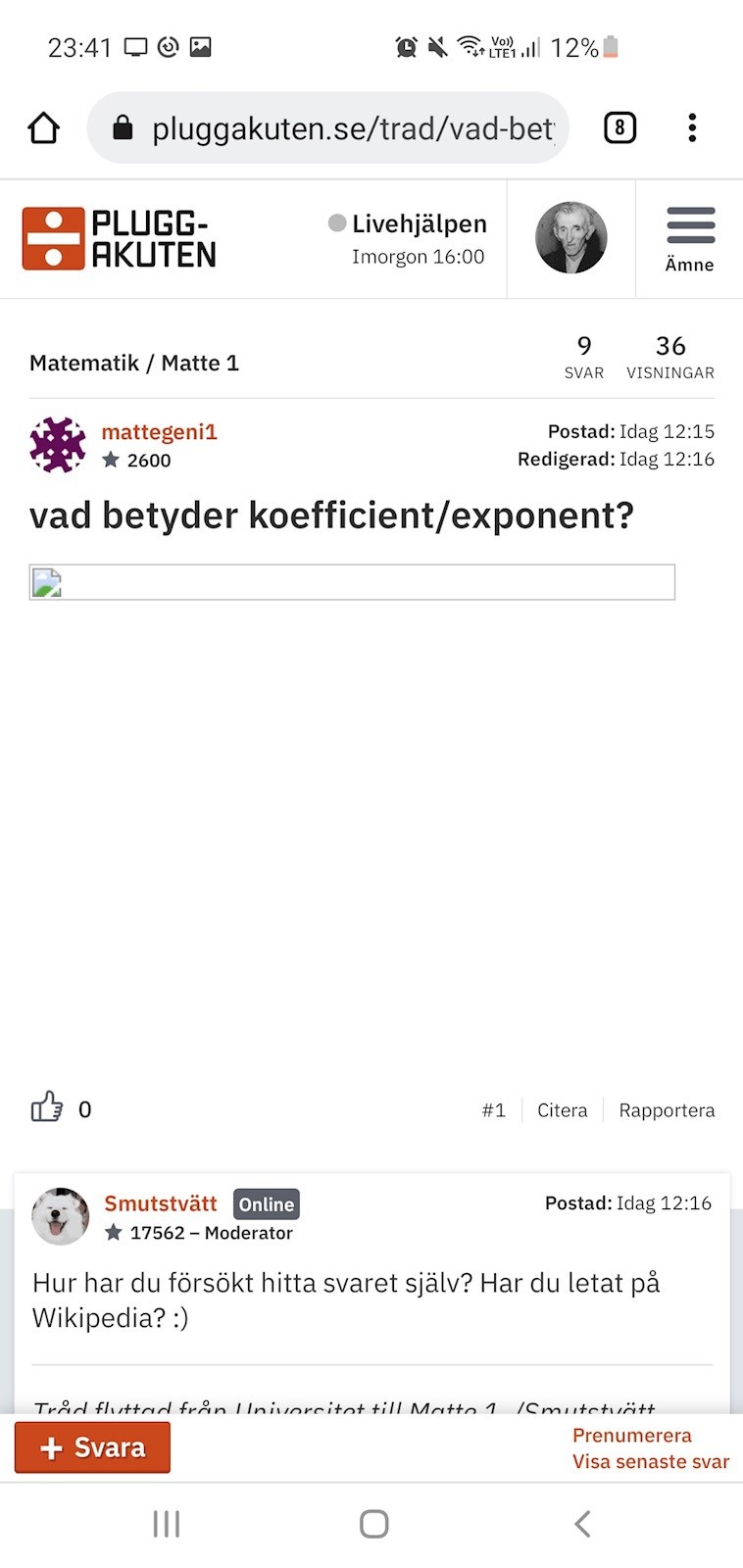 Ja, det ser likadant ut för mig. Men det ser ut som att Smutstvätt kunde se den eller så kanske hon antog att frågan handlade om: "vad är en exponent/koefficient" precis som jag trodde.