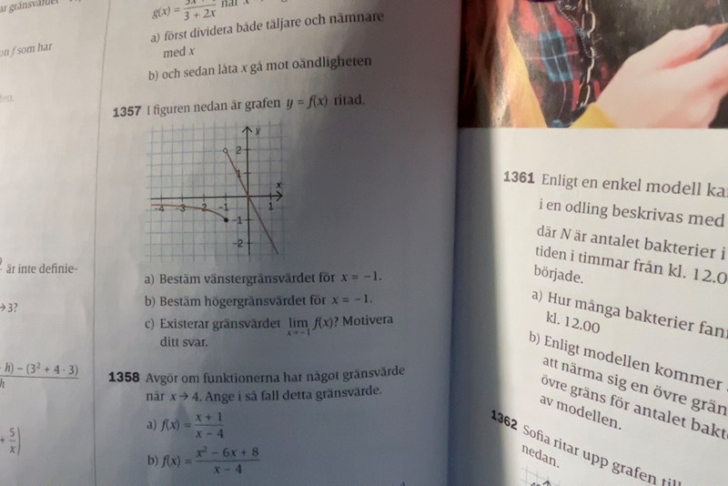 På 1357 c) då tänkte jag att eftersom det står en pil under som går mot x -> -1, vilket då i min tanke betyder att frågan undrar vad gränsvärdet är när x rör sig mot -1, alltså vänstergränsvärdet. Men det var fel. Hur är det egentligen?