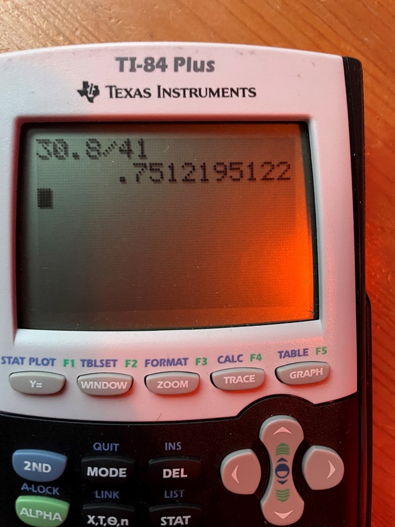 EDIT; Oj, jag läste fel på din bild! Där har du räknat rätt, 30,8/41 g/cm3