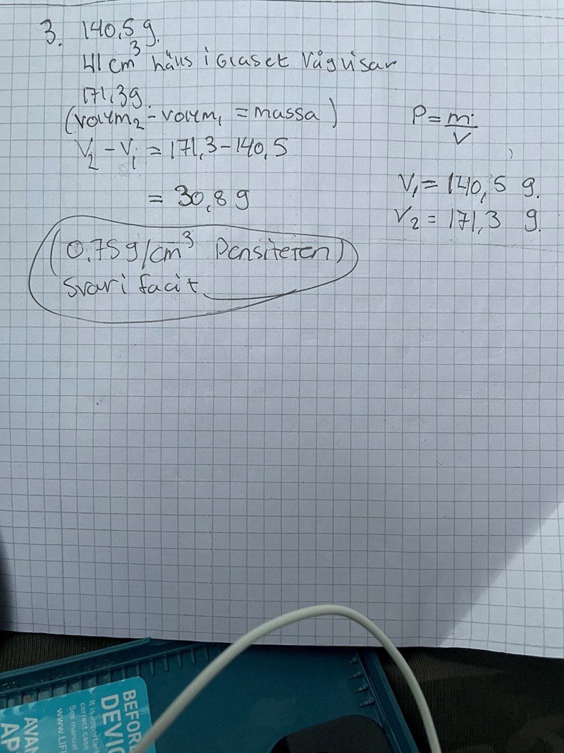 när du skrev tillkommande var det mer tydligt. ”Beräkna vätskans densitet” : så tänkte jag ”vilken vätska”?