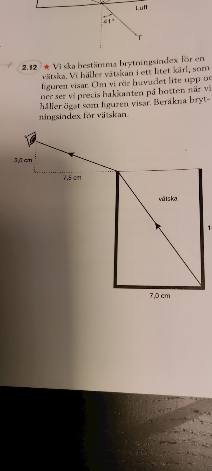 Oj jag såg det nu, vinkeln höger om i är den rätta alltså? Mot normalen, rätt räkmat på vänster sida om vätskan men ej till höger. Tack återigen!