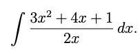 Försöker köra primitiva funktionen genom att flytta upp x till täljarn med det blir ju bara 1. Därefter dividerar jag med två på alla delar och kör primitiva funktionen av det som är kvar med det blir fel.
