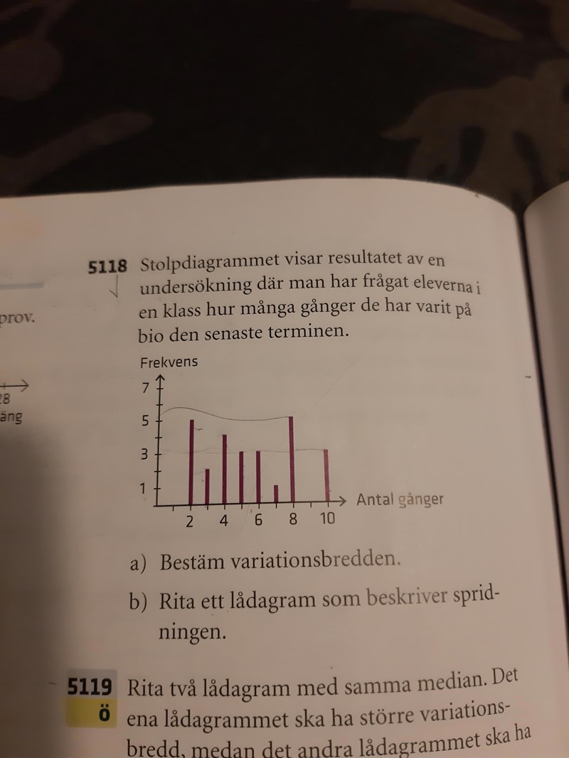 Tack! Jag lyckades få fram medianen (som blev 5, vilket stämmer med facit). Men jag har en till fråga angående det lådagram man ska rita upp enligt uppgiften (5118).