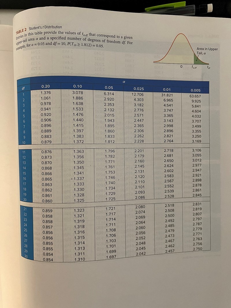 Jag har tillgång till en t-tabell