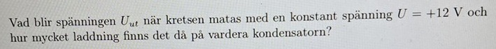 Uppgiften lämnar outtalat att laddningarna på kondensatorplattorna var noll innan man kopplar på 12 volt på ingången.