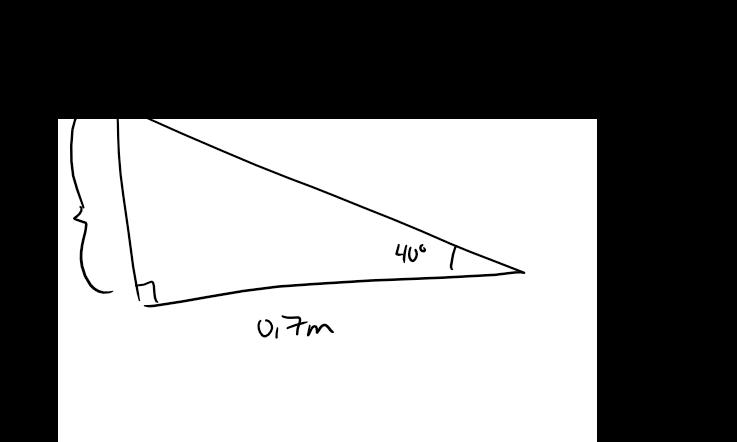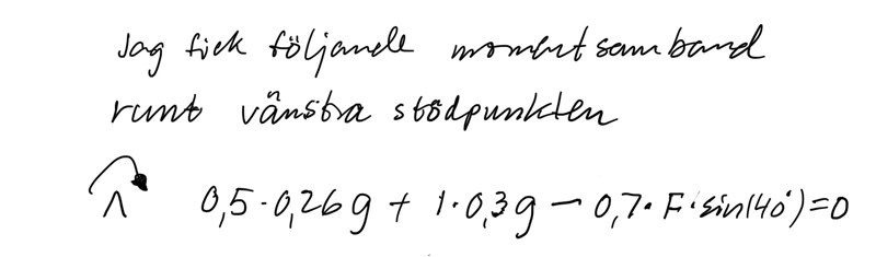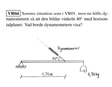och att det vinkelräta avståndet för dynamometern till änden är 0.7tan(40) = 0.59m