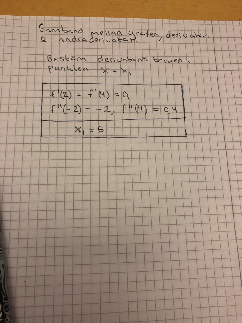 • Tangenten till grafen är vågrät för x=2 och x=4
