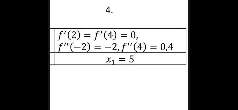 En tredjegradsfunktion kan skrivas som f(x)=ax3+bx2+cx+d. Vad är f'(x)= Vad är f''(x)? Använd information från uppgiften för att bestämma värdet på konstanterna a, b och c.