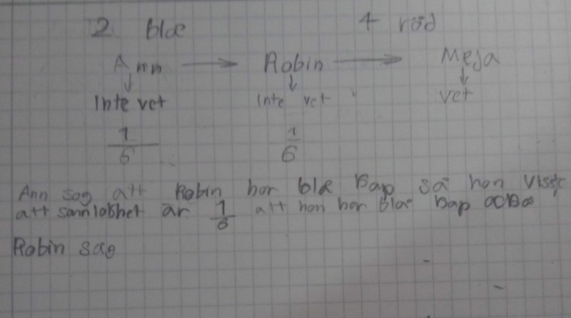 (Däremot vet vi inte vilken färg Ann och Robin hade på sina kepsar.)