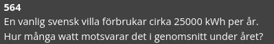 Jag uppfattade det som att jag skulle omvandla kWh till W så jag fick resultatet 9 10⁹. Dock, är jag inte jättebra på fysik så det kan vara anledningen.