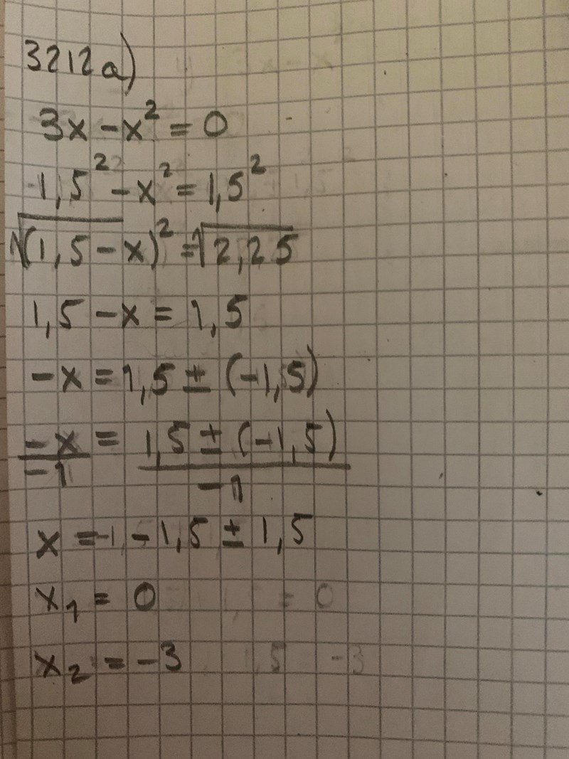 Du tappar mig redan i första steget! Är inte alls med på hur 3x byttes ut mot 1.5^2-orna. Om du börjar på