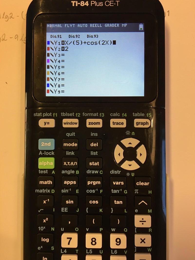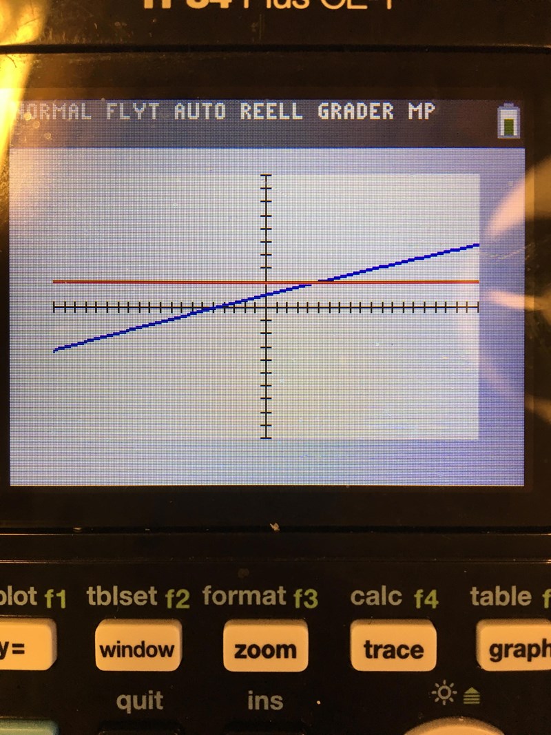 Jag förde in funktionerna i min graf räknare men grafen jag får har bara en skärning och den är dessutom fel.