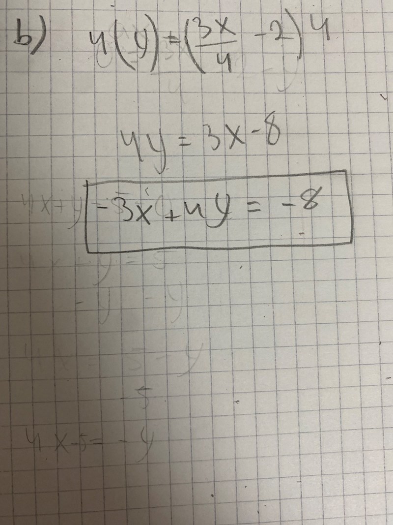 Man kan skriva 3x-4y = 8 om man vill, men vem säger att det första är fel?