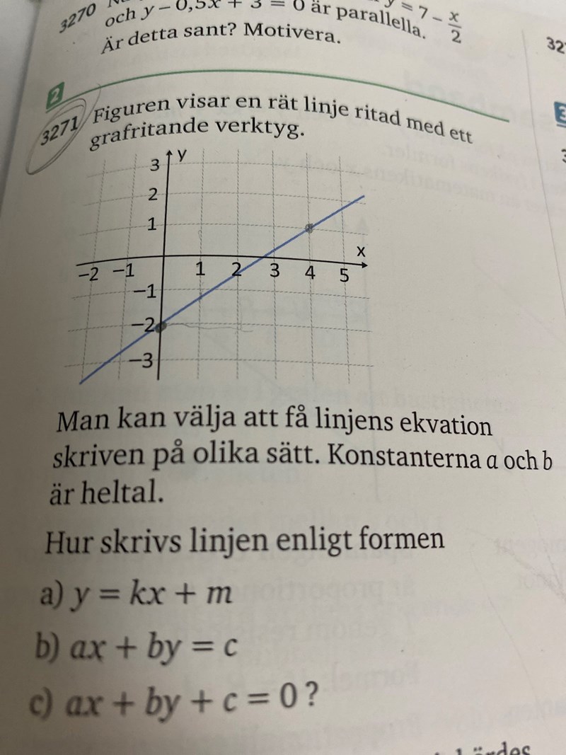 Tips: Låt x-termen stå kvar och 'flytta' y-termen och det konstanta talet