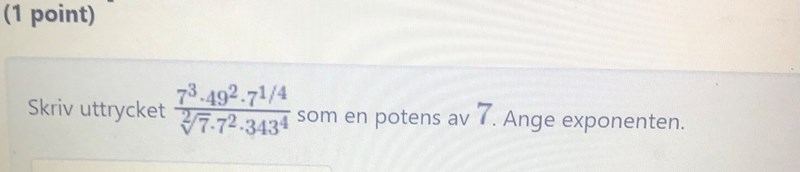 Du ska skriva som en potens av 7 och se vilken exponenten blir då.