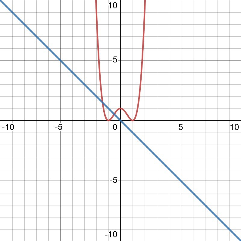 Nu ser jag på GeoGebra när jag slår in funktionen att den visst har en lösning på intervallet. Vad är fel i mitt resonemang?