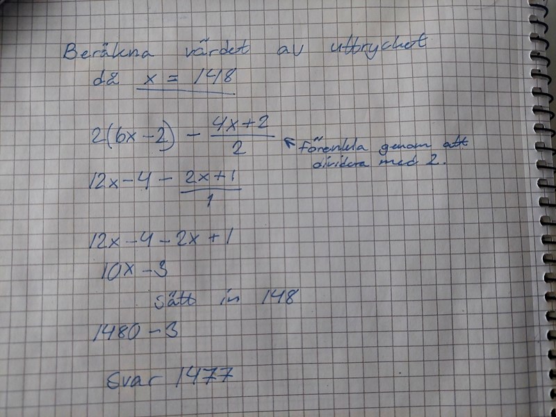 Vad gör jag för fel? Enligt facit är rätt svar 1475. Är det att det inte går att förenkla (4x+2)/2 på det sättet. Jag trodde att värdet av en division inte förändrades så länge man gjorde samma sak i täljaren och nämnaren. Eller går inte inte använda sig av det när inte hela uttrycket är en division. Eller är det något uppenbart som jag missar eller har skrivit fel?
