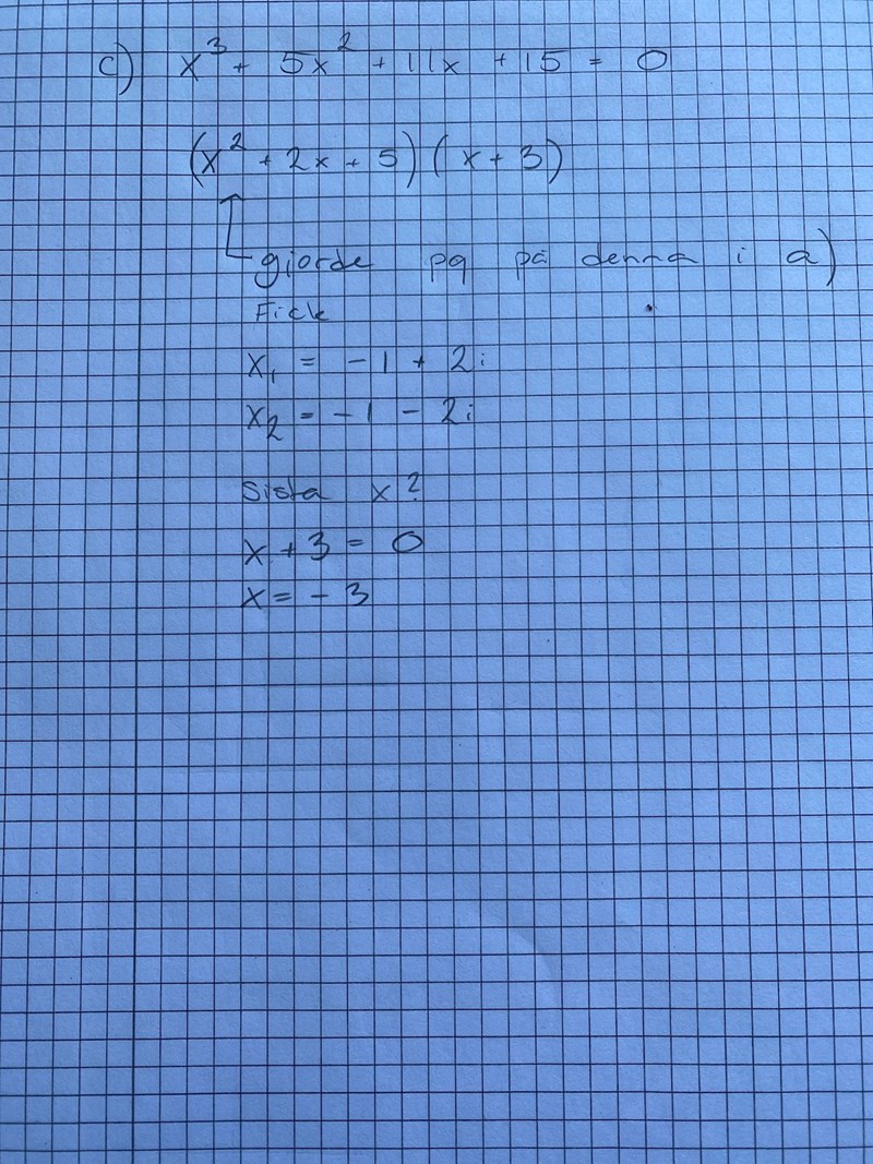 Det är på c) jag får fel. Enligt facit ska x = 3 och inte -3