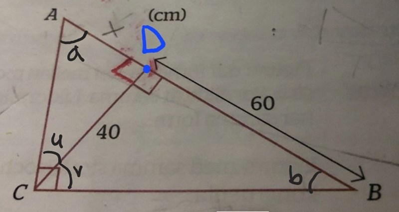jag tänkte att eftersom triangeln ACB och triangeln CBD (jag hittar på D, jag tänker att det är där det står 60 cm)