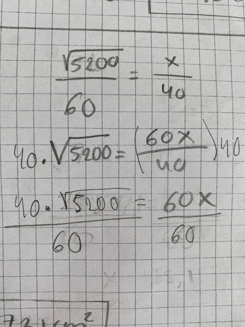 ”Se bild, triangeln ACD är likformig med triangel BCD, vilket ger att x40=4060x40=4060.”