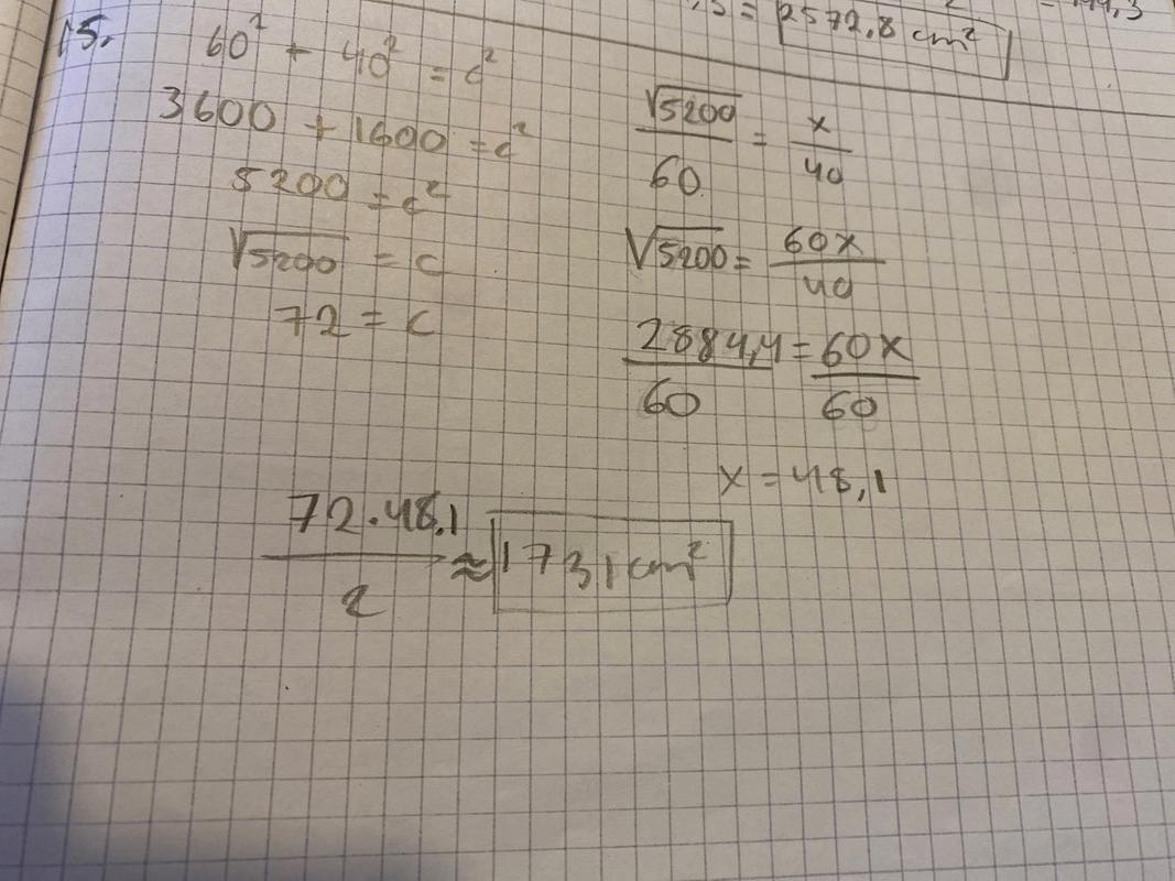 Det var första biten, om triangeln med sidorna 60, 40 och [roten ur 5300]
