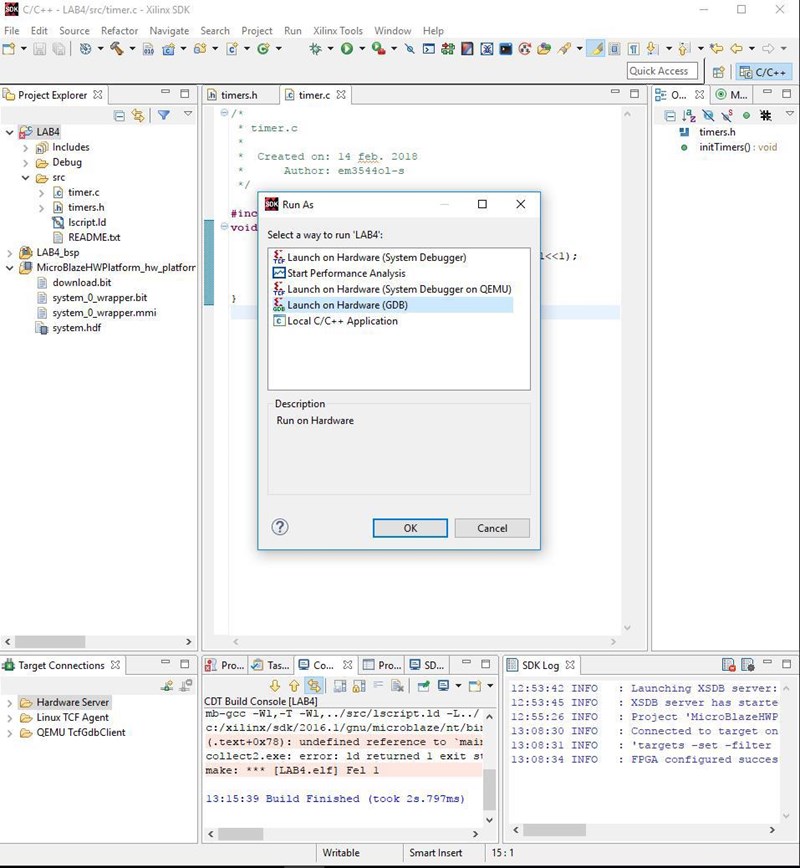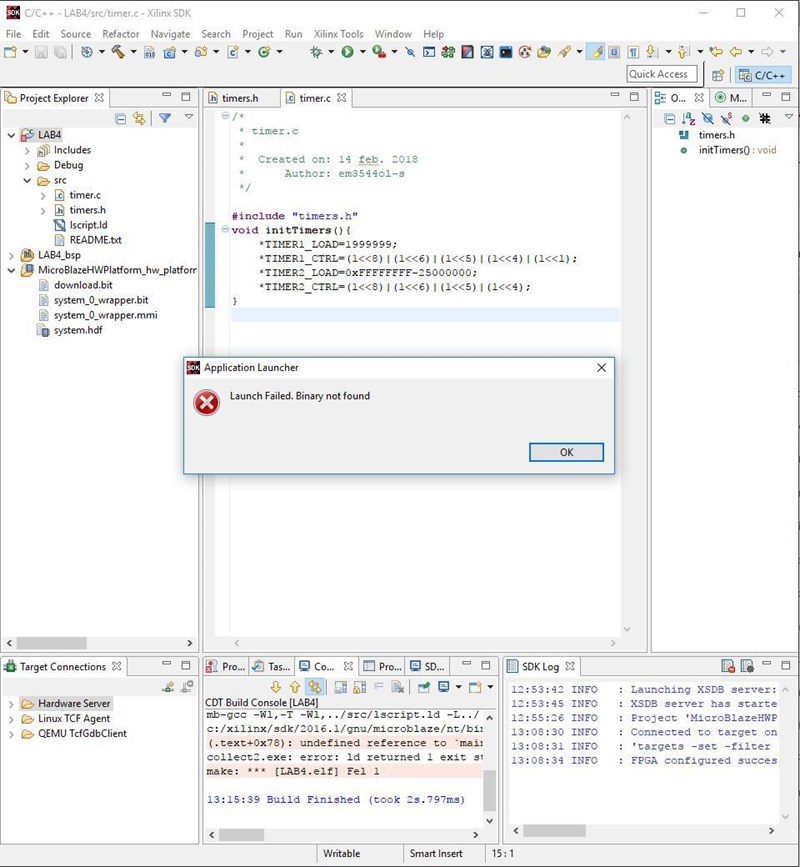 Jag är helt ny när det kommer till att programmera i C samt i denna utvecklingsmiljön, Xilinx SDK. I bilderna nedan visas kod samt felmeddelande. Någon som vet hur jag löser detta?