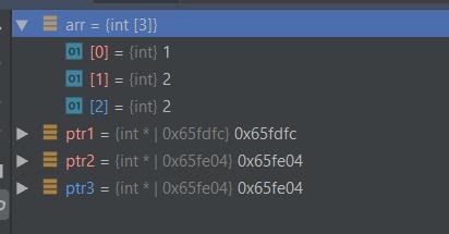 Enligt debuggern pekar ptr2 och ptr3 på samma sak vilket jag tolkar som att if satsen blir false.