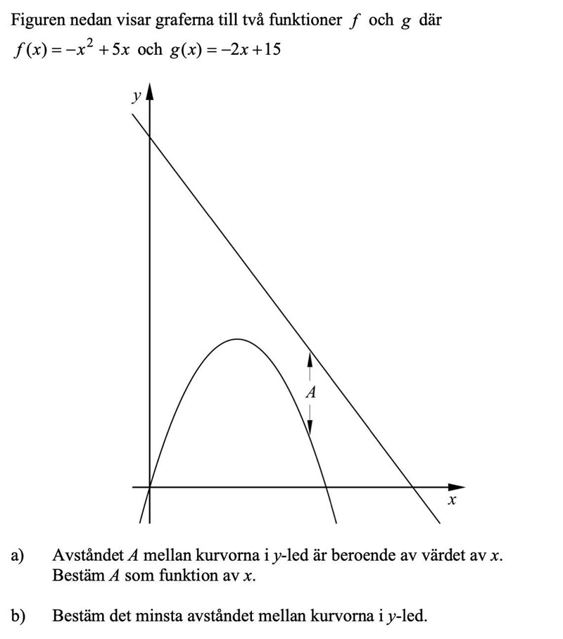Svaret på b är 2.75 då minimipunkten på grafen är 3.5 =x