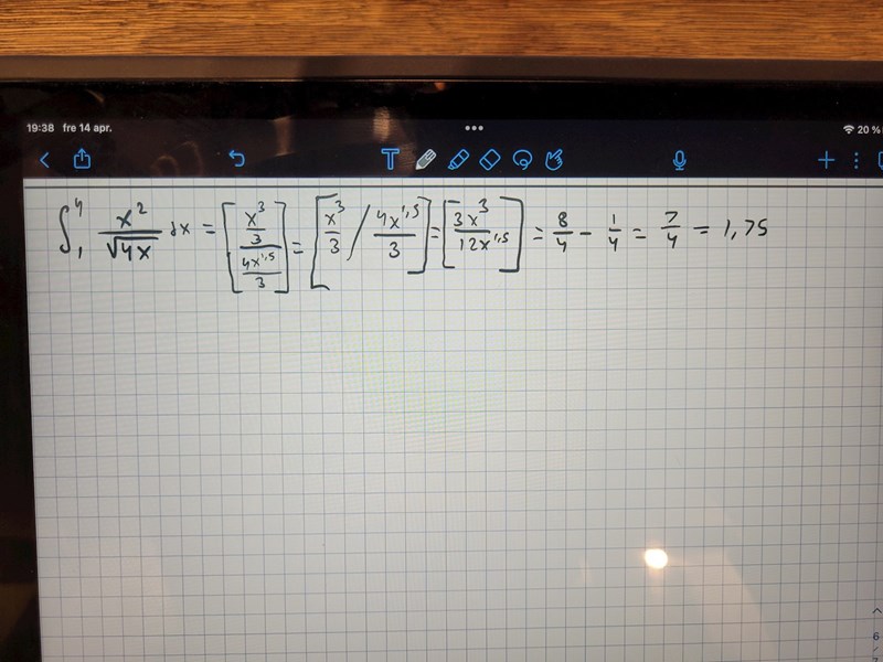 Är det för att jag drog primitiva funktionen av sqrt4x på nämnaren?