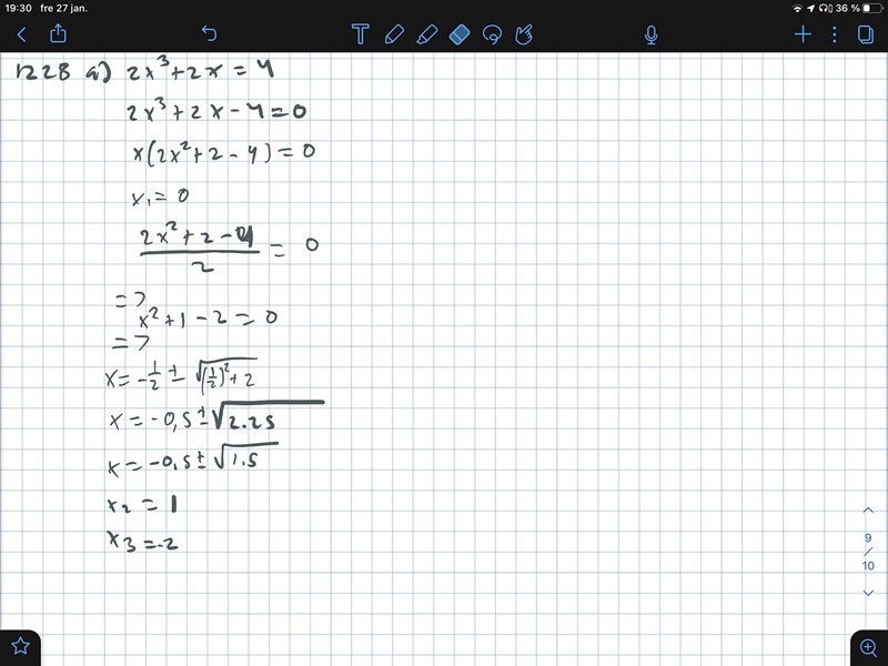 På a-uppgiften 2x3+2x-4 = 0 har vi just den situationen.