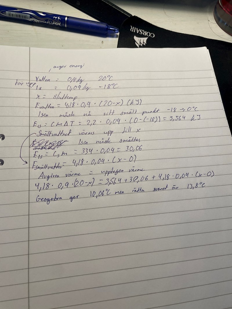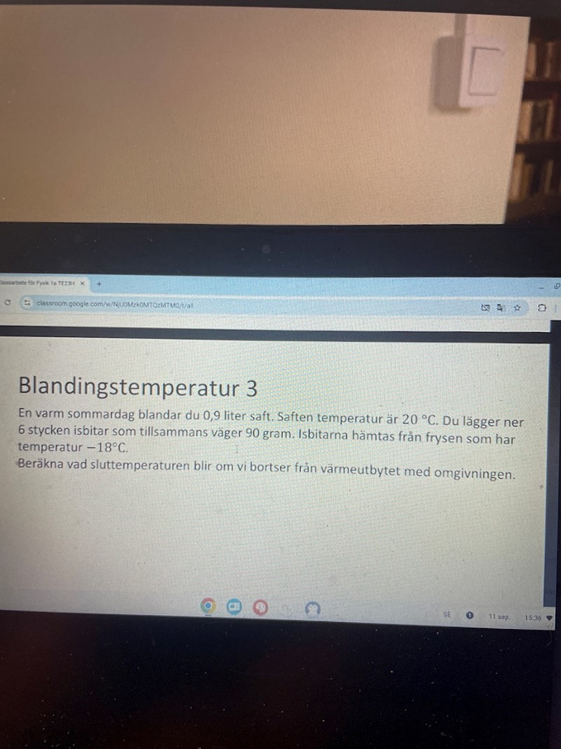 Vilken temperatur får det varma vattnet när isen precis har smält?
