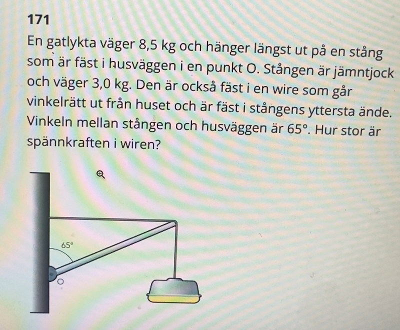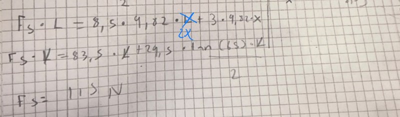 Olika momentarmar. Fs vekar horisontellt så dess effektiva momentarm är L lång. 8,5 g verkar vertikalt så dess effektiva momentarm blir 2x lång.
