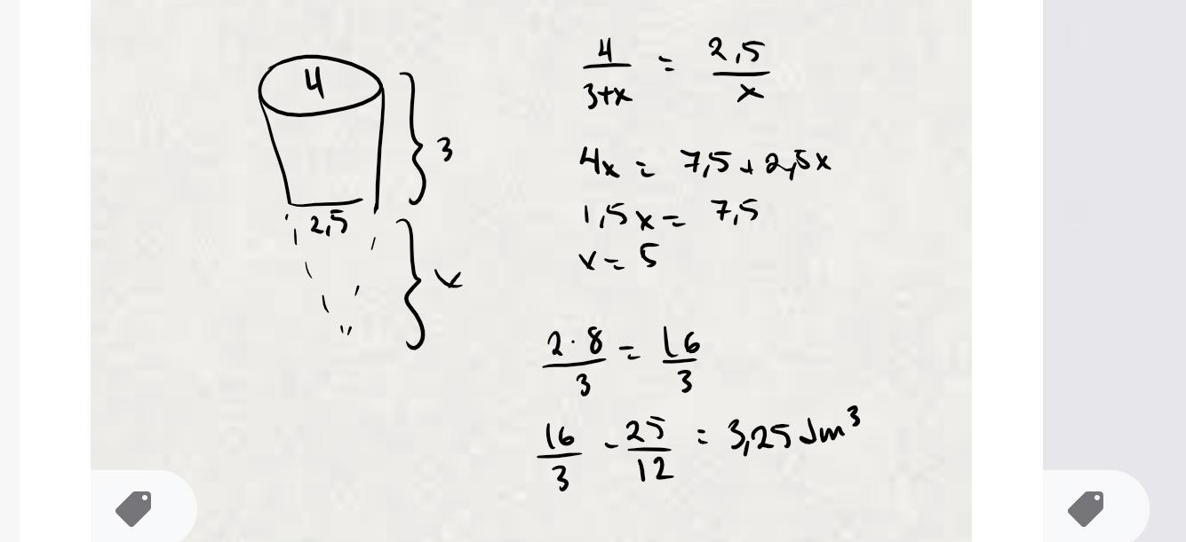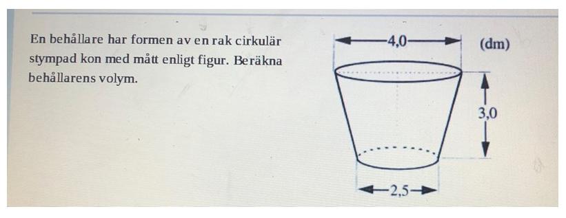 Jag förstår. Men du verkar inte beräkna basarean av konen (eftersom jag inte ser pi och basarean är en cirkel)