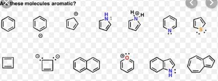 - figur 3, 6 är aromatiska (nedre raden, räknat från vänster)